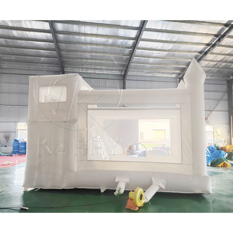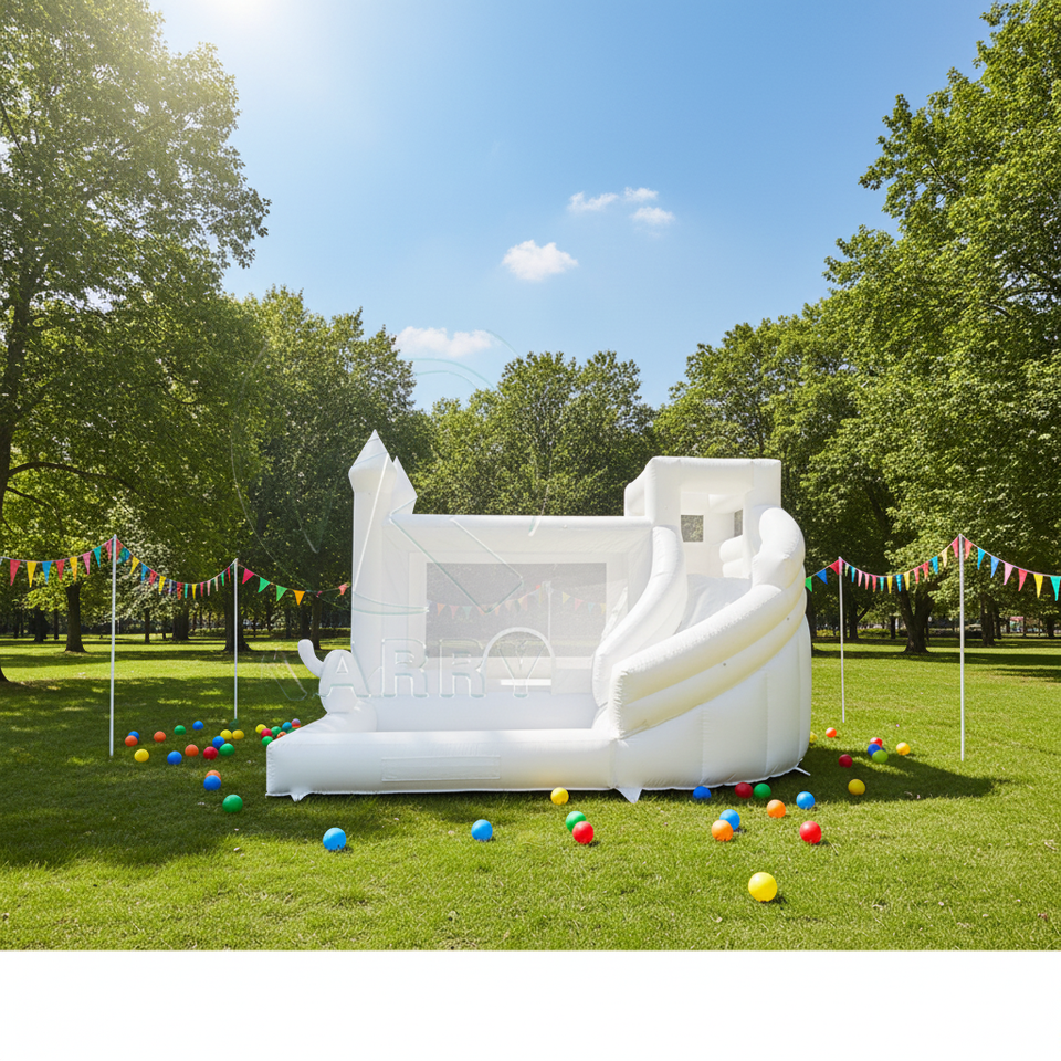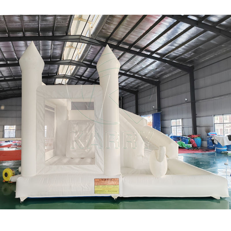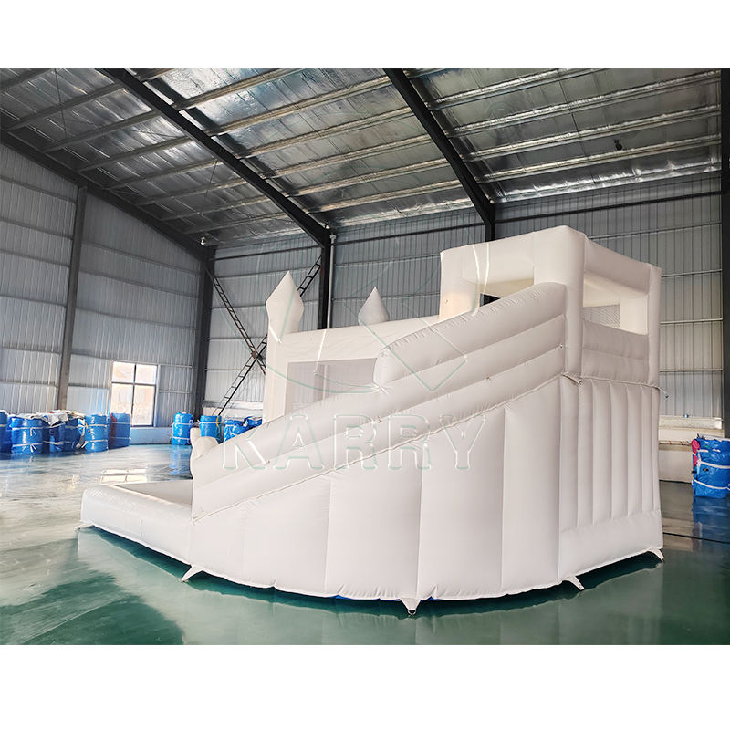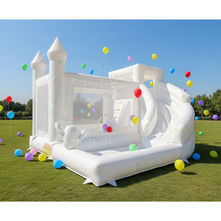 Château gonflable blanc certifié CE en PVC, château gonflable avec toboggan et fosse à balles pour mariage en plein air