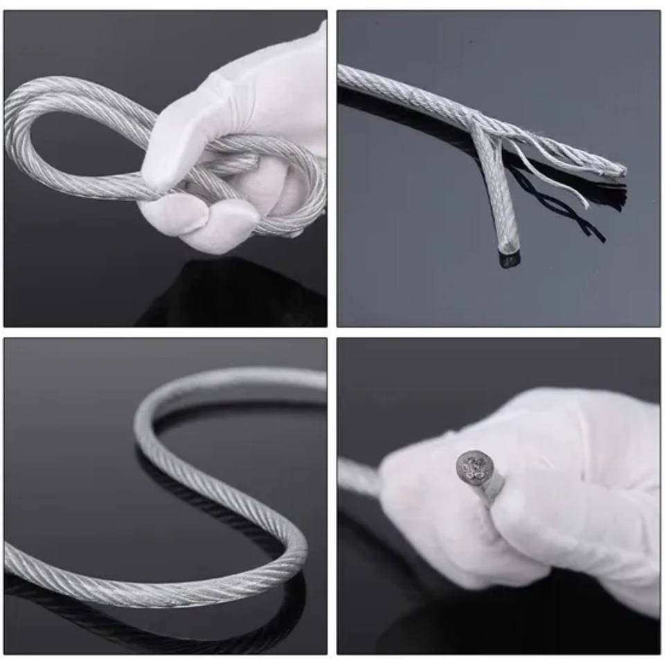 Câble métallique flexible enduit de PVC câble souple diamètre de corde à linge en acier inoxydable transparent 0.8/1/1.5/2/2.5/3/4mm