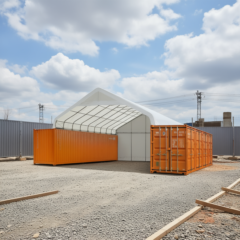 Conteneur en tissu PVC 30' x 40' ignifuge, résistant à l'eau et aux UV, design industriel