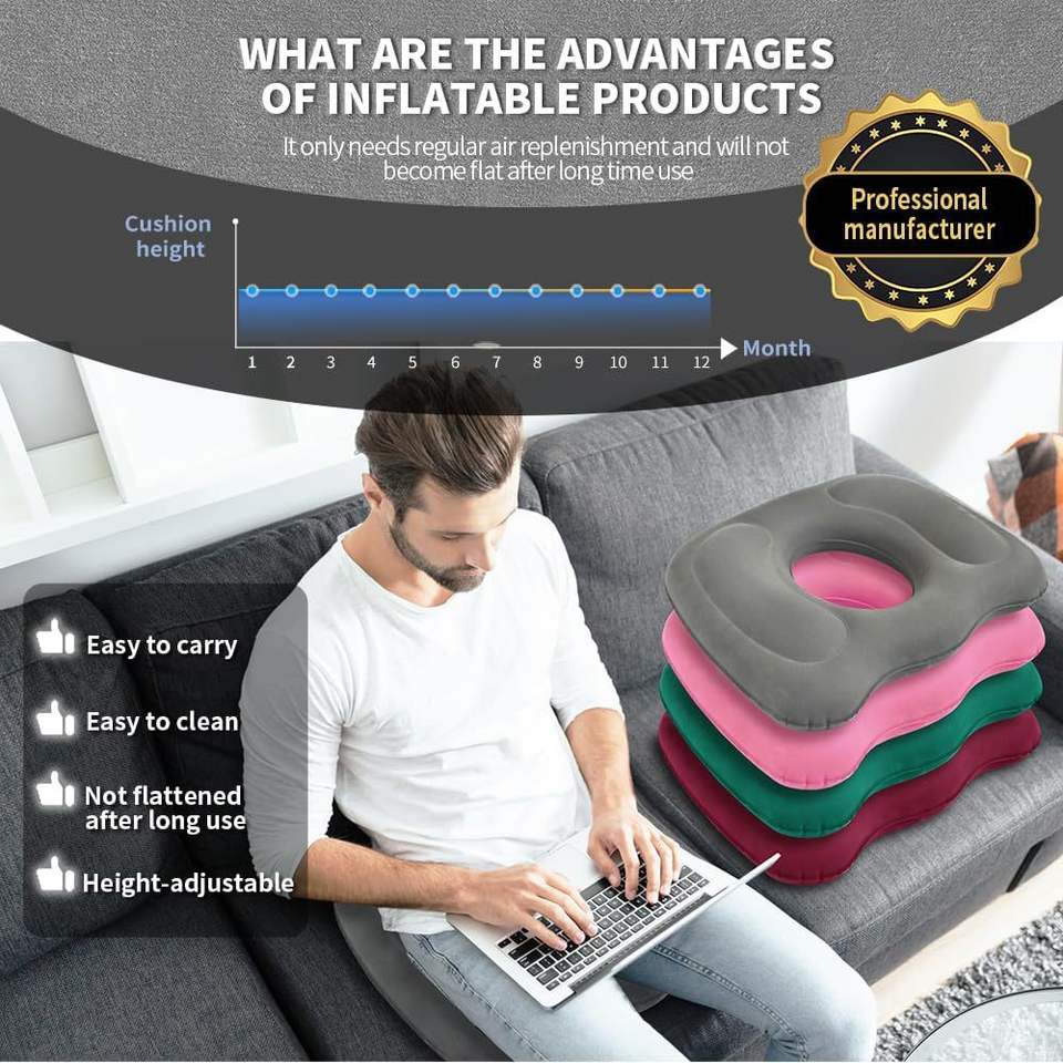 Coussin d'air gonflable anti-décubitus floqué en PVC antidérapant pour le bureau longue séance approvisionnement en soins de santé pour les hémorroïdes à long terme