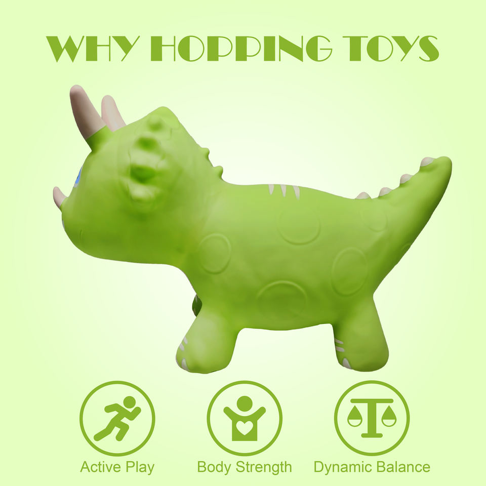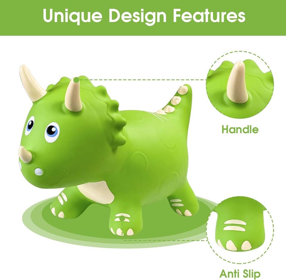 Cheval à bascule décoratif en PVC vert, Dragon Hopper, avec poignées mécaniques blanches, pour enfants, d'extérieur, en forme d'animal (cheval, dinosaure)