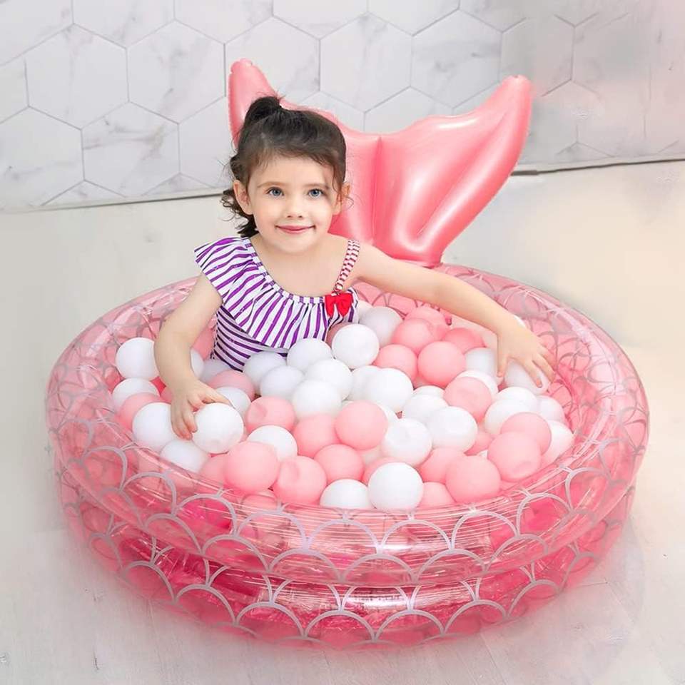 Piscine sirène gonflable en PVC 35*10 pouces couleur rose pour enfants pour piscine ronde de jardin intérieur et extérieur