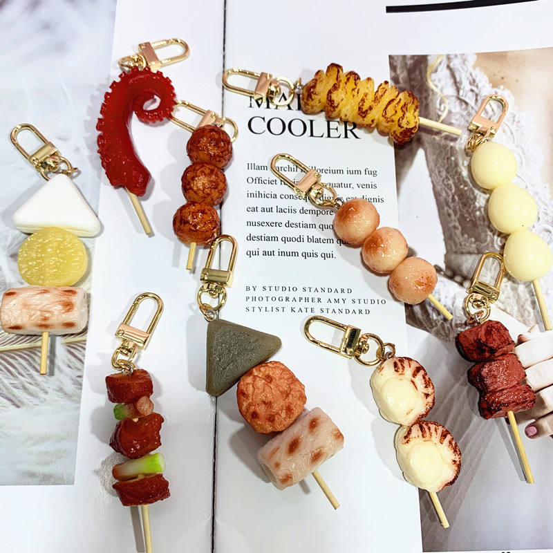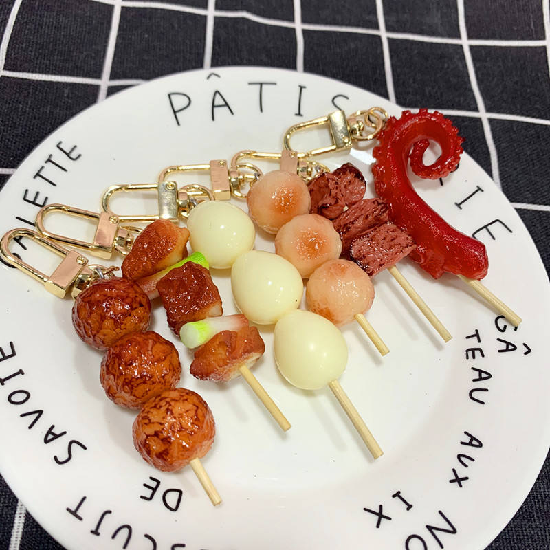 Porte-clés en PVC, simulation de nourriture : brochettes de viande barbecue, tentacules de calmar, gluten Kanten