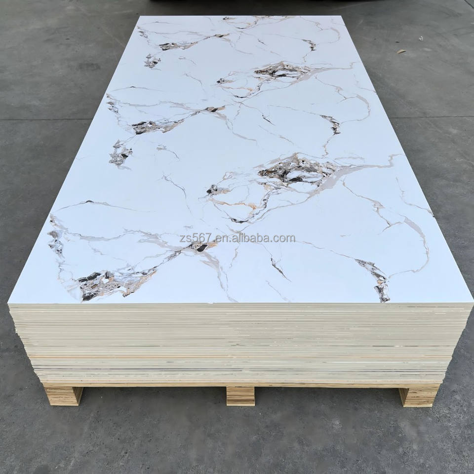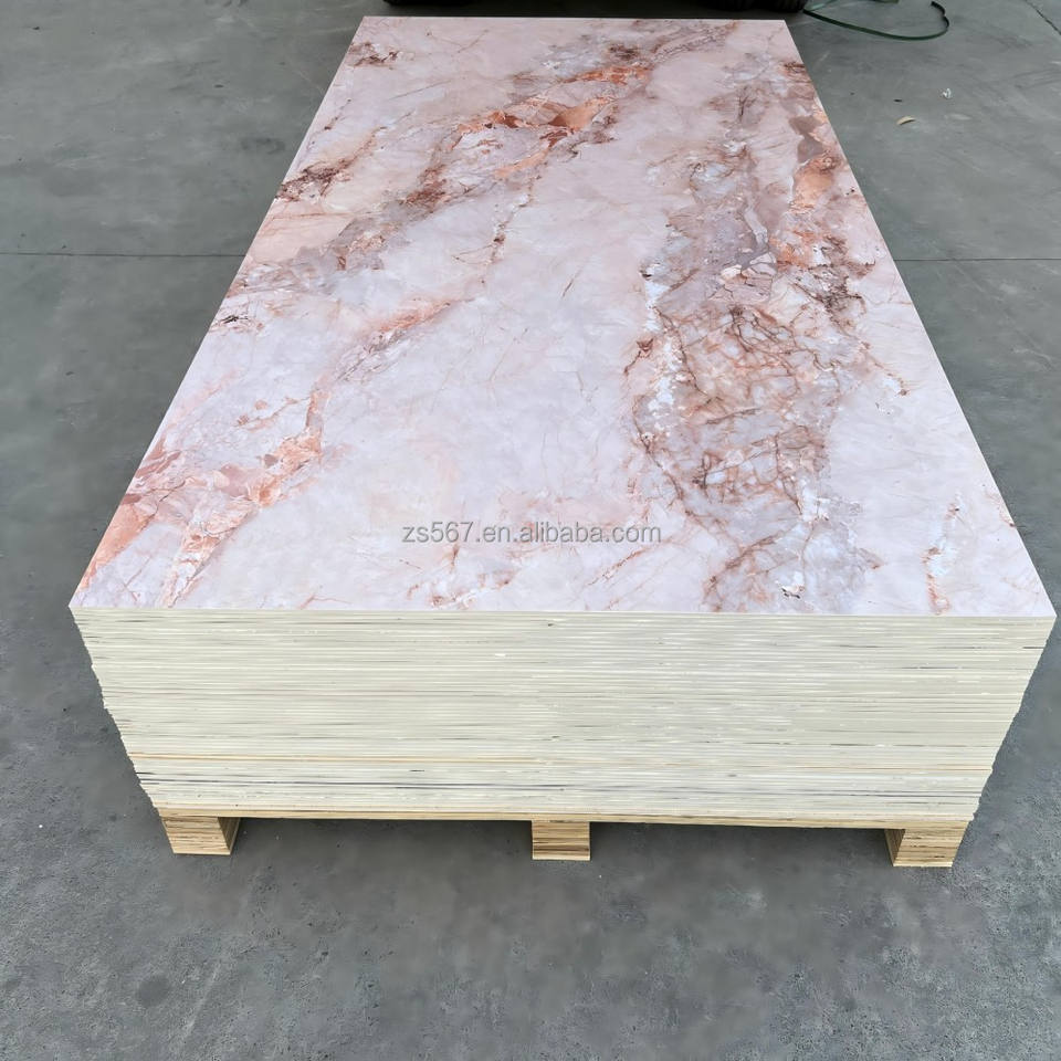 Plaque de marbre PVC 4x9 pieds 3mm en stock, vente en gros et au détail pour la décoration murale de bureaux, magasins, maisons et hôtels