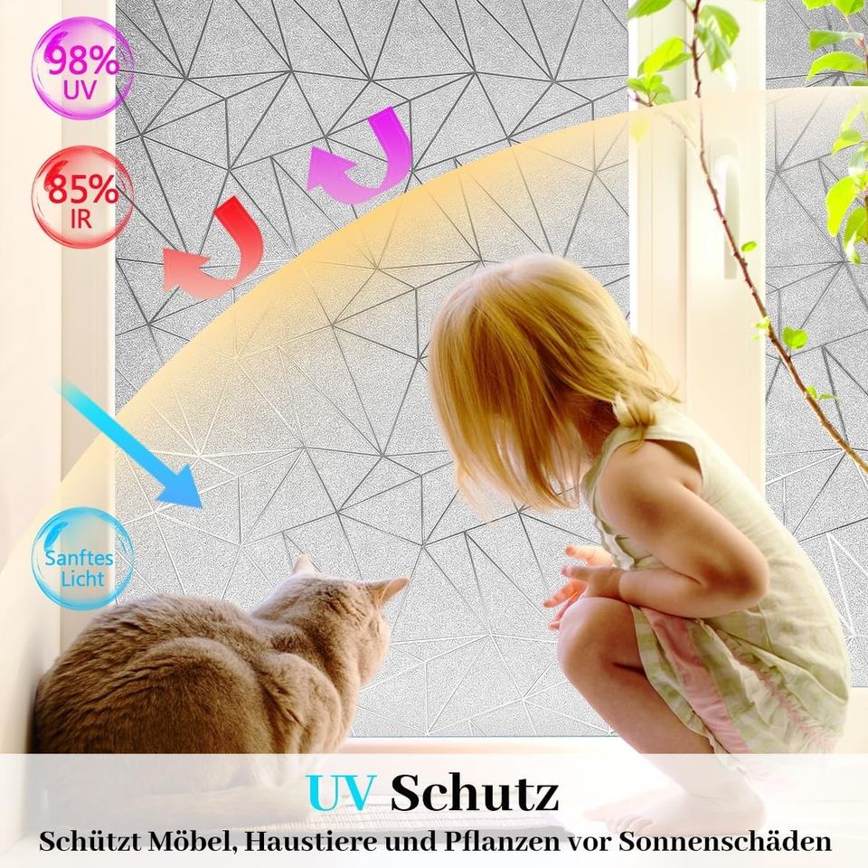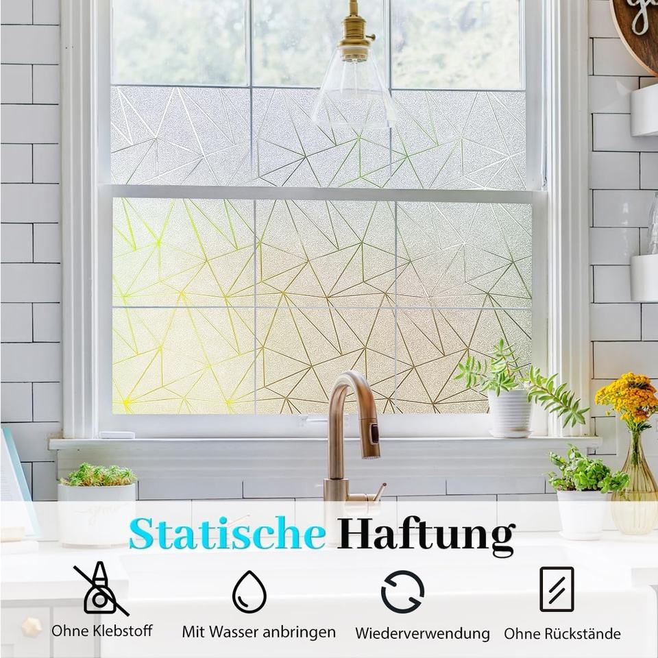 Film de fenêtre opaque en PVC, motif triangulaire, adhésion électrostatique, protection UV, film décoratif pour l'intimité