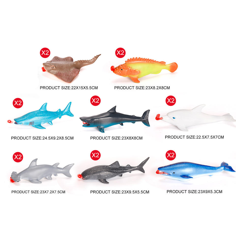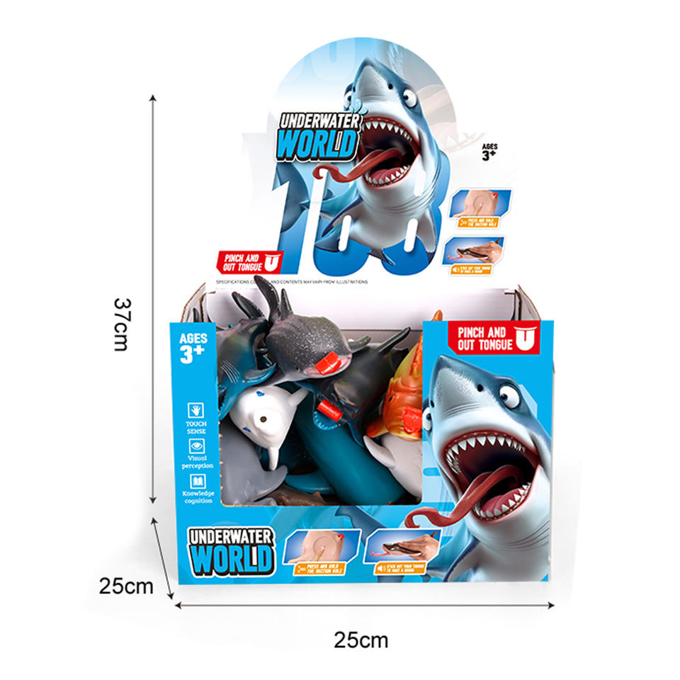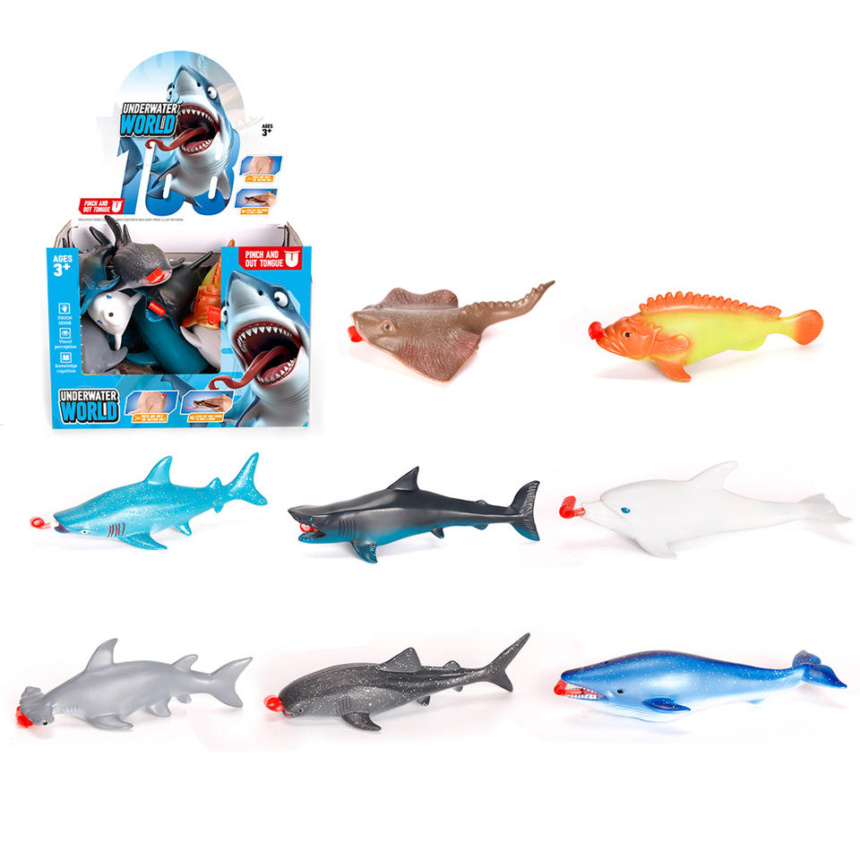 Jouet à presser en PVC, animal marin, requin baleine avec langue qui roule, fonction de pression qui fait sortir la langue, personnage inspiré d'Animal Crossing