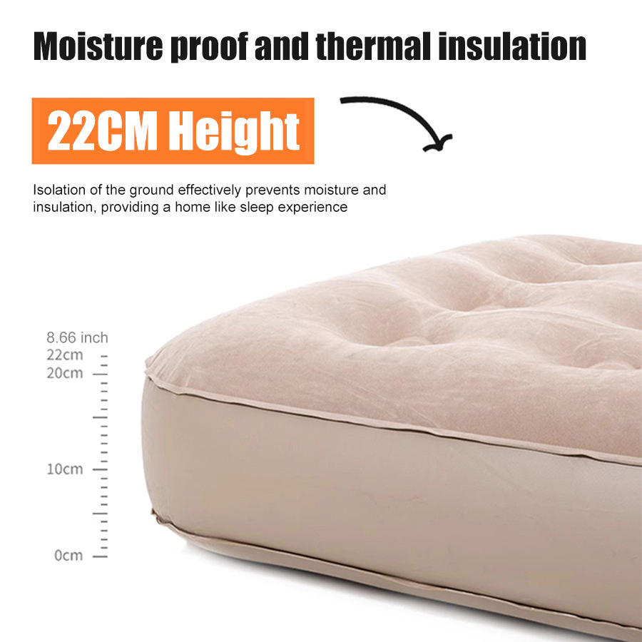 Lit d'air en PVC avec surface en daim, pompe à pied intégrée, hauteur 22 cm, matelas de camping pour une personne