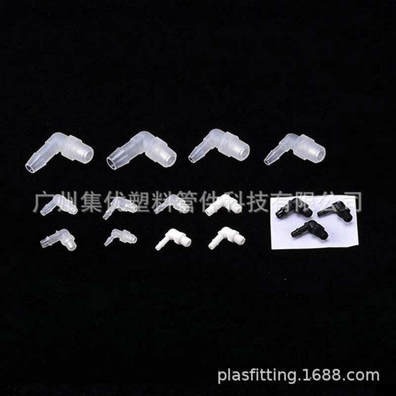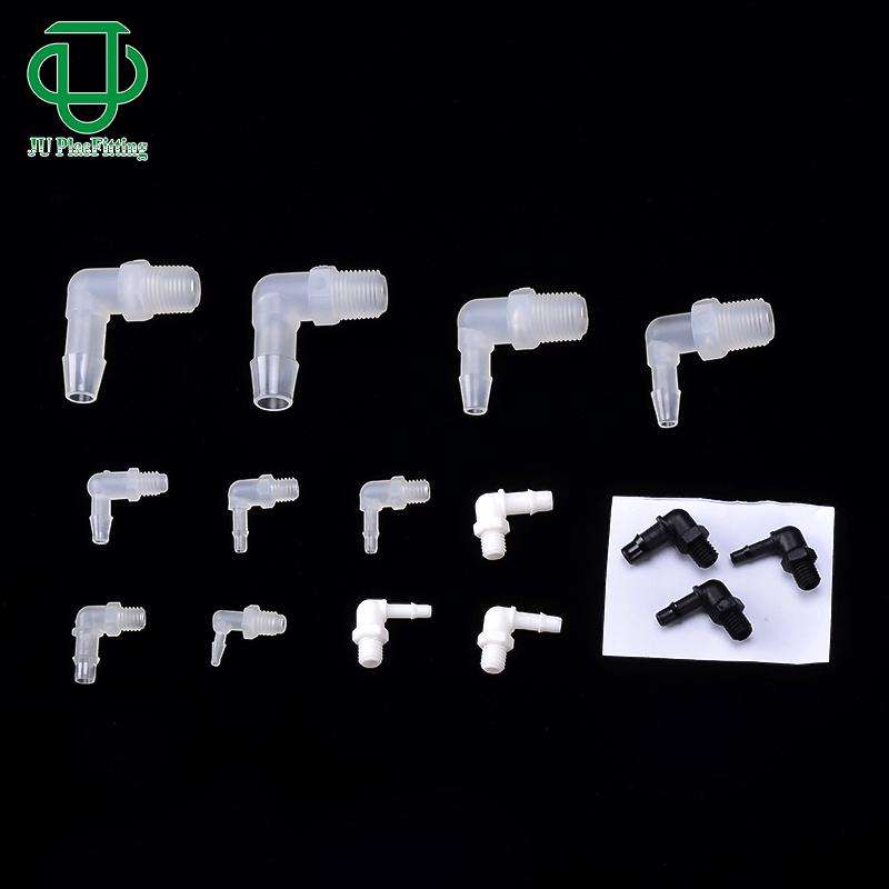 Connecteur coudé à angle droit fileté en PVC 1,6-6,4 mm à enfiler pour tuyau en caoutchouc