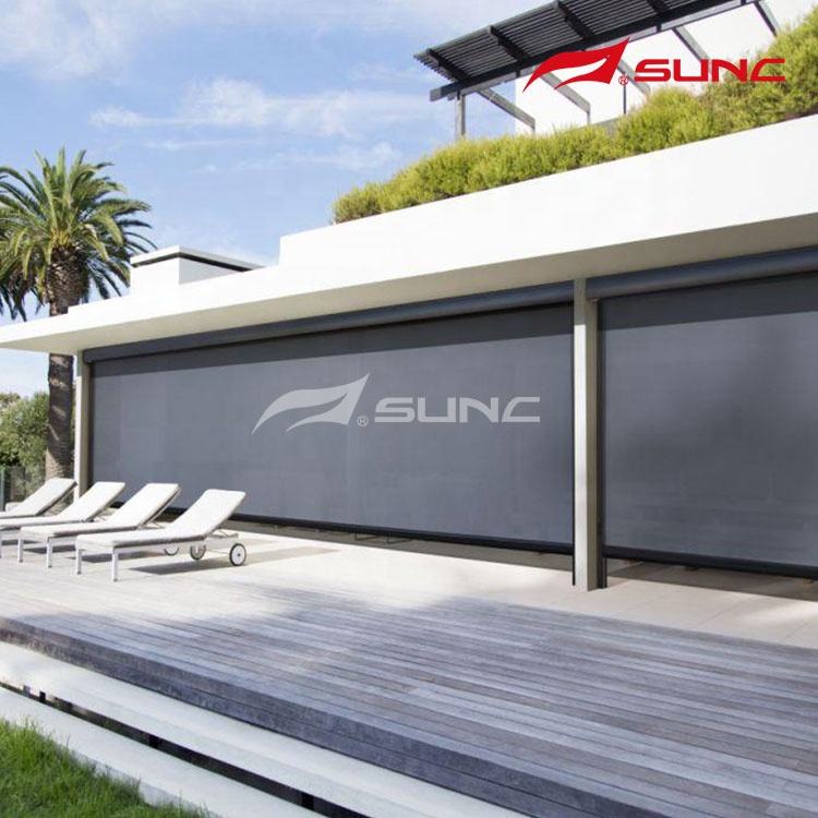 SUNC extérieur électrique coupe-vent en plein air zip rail piste stores à rouleaux