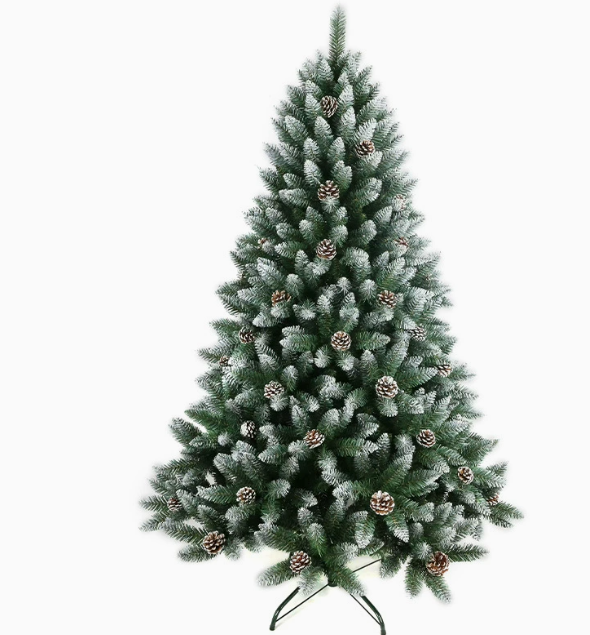 Sapin de Noël en PVC blanc pulvérisé avec baies rouges et pommes de pin, décoration de sapin de Noël réaliste et dense en forme de sapin de pin
