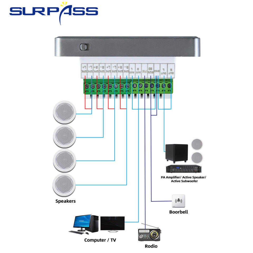 Système d'amplification murale audio professionnel HiFi pour maison intelligente PW425G, 4x25W, écran HD 2,8 pouces, touche tactile TV