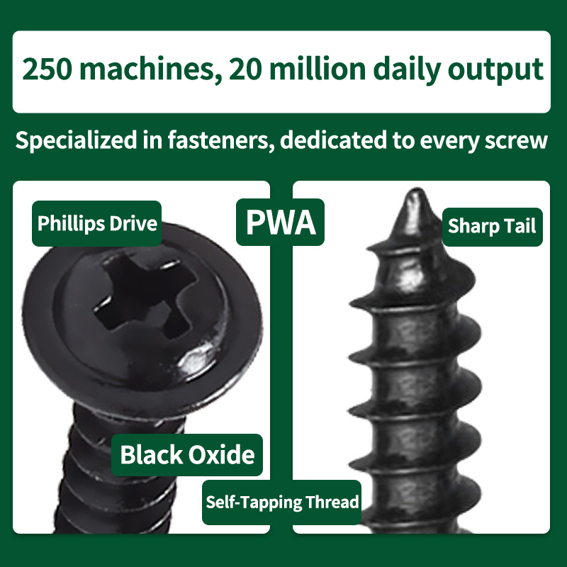 Vis autotaraudeuses à tête cruciforme noire PWA, vis à tête ronde autotaraudeuses, vis pour châssis d'ordinateur, vente en gros M4/M5