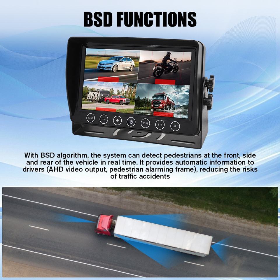 Système de caméra de recul filaire pour véhicule RV PWAS avec moniteur 7 pouces, vision nocturne BSD, caméra de recul et kit de caméra de recul pour camion