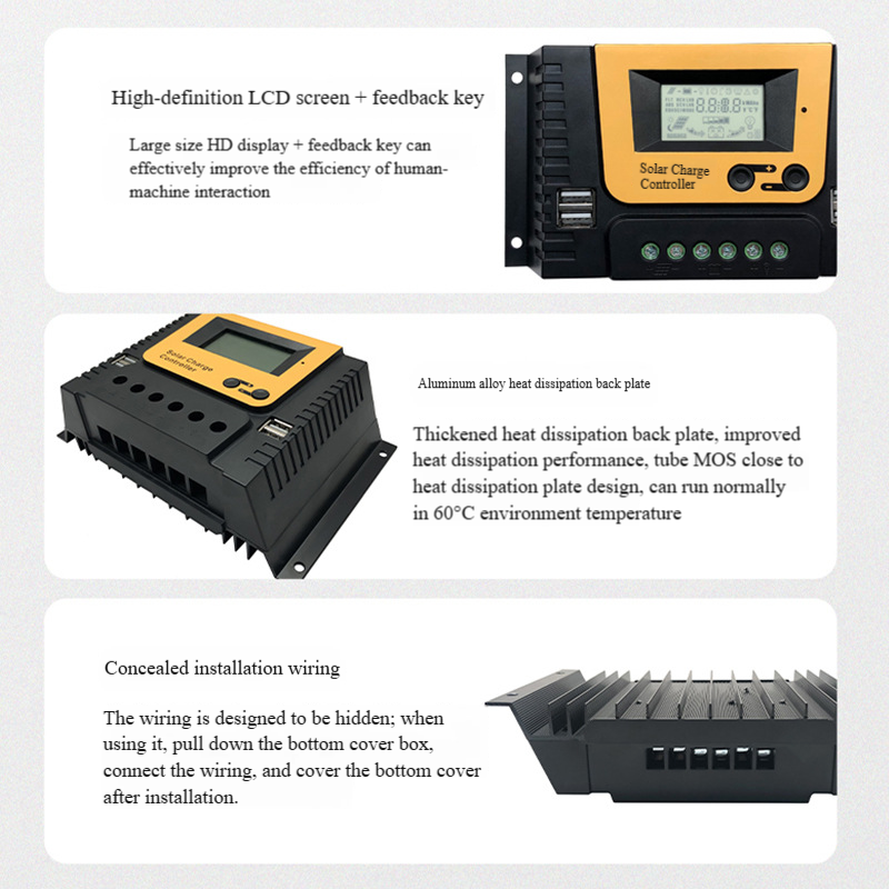 Contrôleur de charge solaire PWM 12V 24V 48V 10A 20A 30A contrôleur de charge solaire panneau solaire régulateur de batterie double écran LCD USB