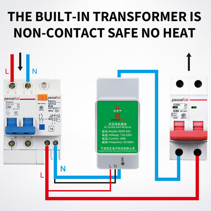 PZIOT-E01 Analyseur de puissance électrique intelligent WiFi IoT avec application Smart Life, Wattmètre AC, Ampèremètre, Compteur Kwh monophasé, Compteurs d'énergie sur rail DIN L13