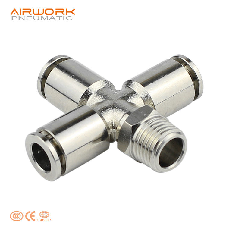 Raccord rapide pneumatique PZR, croisillon 3/8\", 4 voies, acier inoxydable, laiton plaqué, raccord de tuyauterie