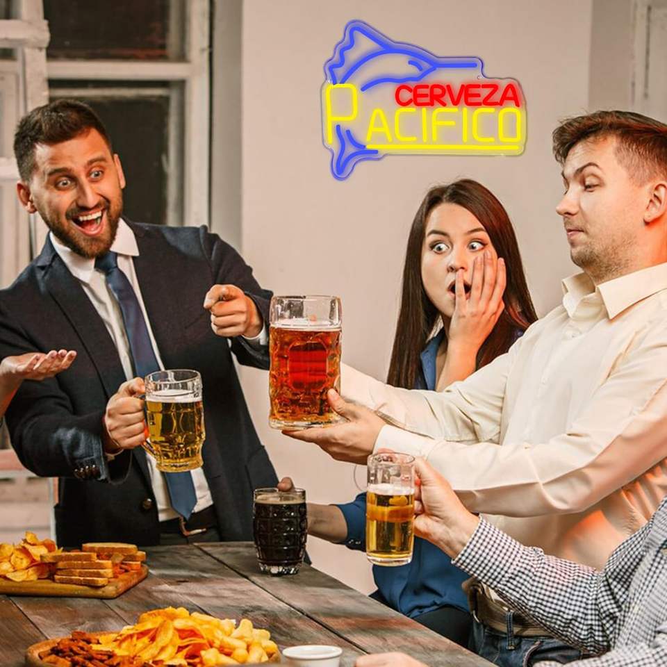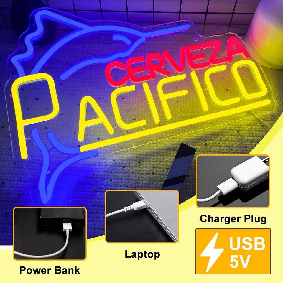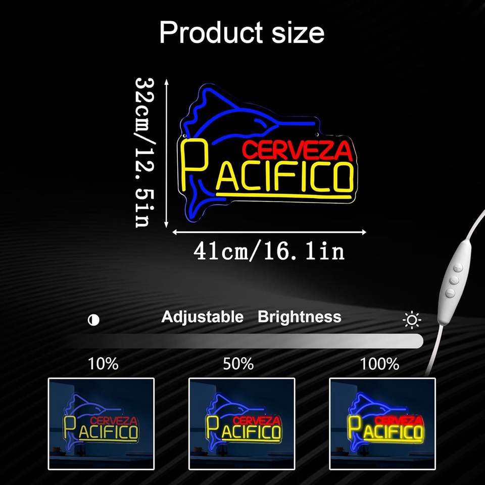 Enseignes au néon en acrylique Pacific Beer Fish Design, LED à intensité variable, alimentées par USB, décoration murale pour bar/restaurant, cadeaux de Noël/anniversaire