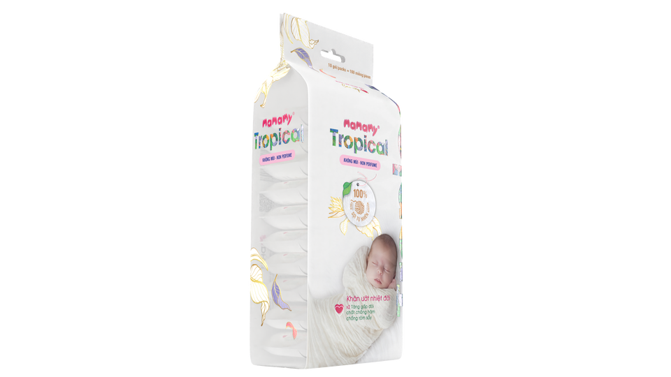 Wholesale Pack of 10 Tropical 100% Natural Rayon Wet Wipes Non-Woven Fibers Baby Cleaning Wipes Mamamy