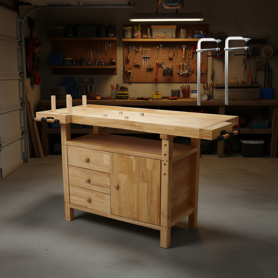 Banc de travail en bois 16 pouces x 4-3/4 pouces avec jeu de pinces à barre pour garage, atelier, bancs de travail domestiques