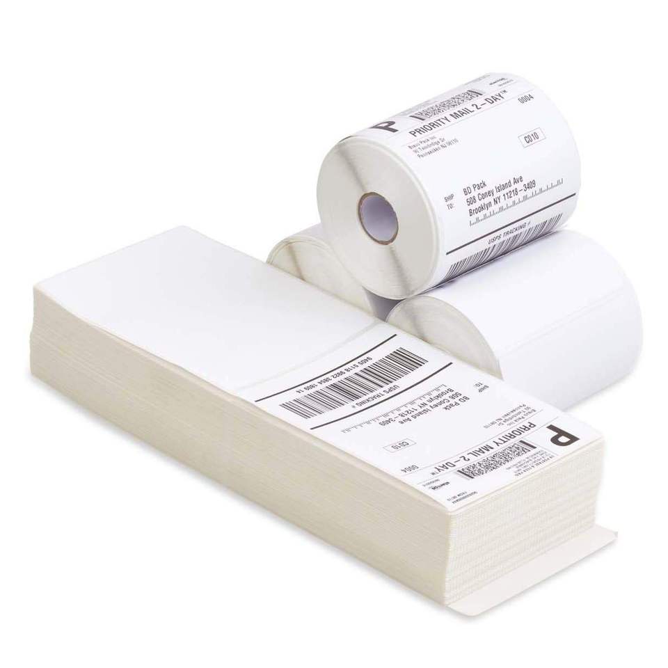 Paquet de 4000 étiquettes thermiques directes fabriquées aux États-Unis étiquettes postales vierges très collantes 4X6 à pliage en éventail compatibles avec UPS FedEx pour USPS