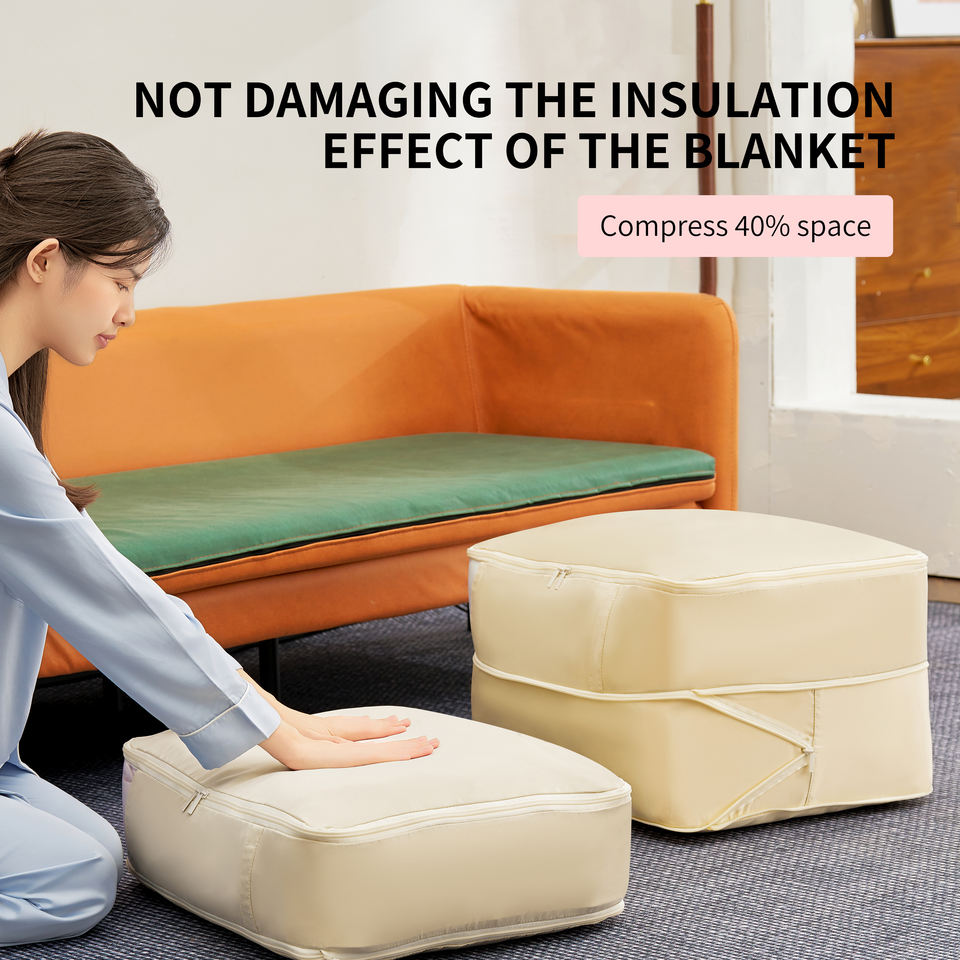 Sacs de rangement en tissu auto-compressants ultra-compactables pour couettes, couvertures et fenêtres