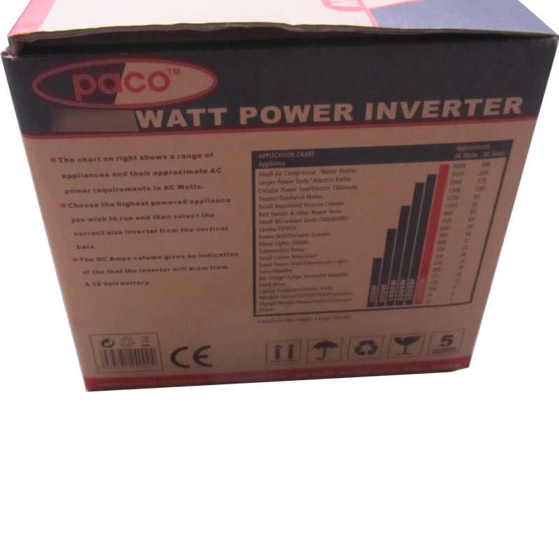 Convertisseur de courant Paco 12 volts 3000W DC à arrêt automatique et alarme, onde sinusoïdale modifiée 220V AC 10A 50/60hz