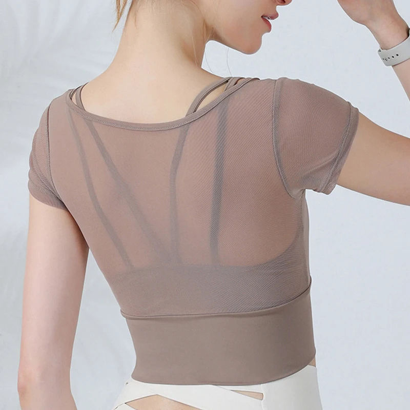 Padd Cup soutien-gorge intégré Golf cultures maille respirant Yoga soutiens-gorge Gym à manches courtes Fitness sport cultures course hauts actif
