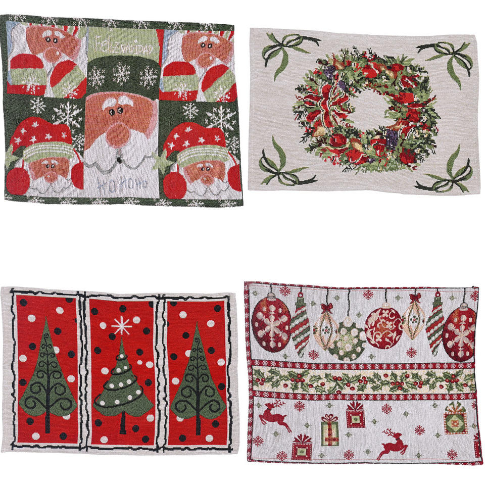 Pafu Chemin de Table de Noël Décorations de Table de Noël Arbre de Noël Nappe en tissu Père Noël Napperons tricotés de Noël pour la famille