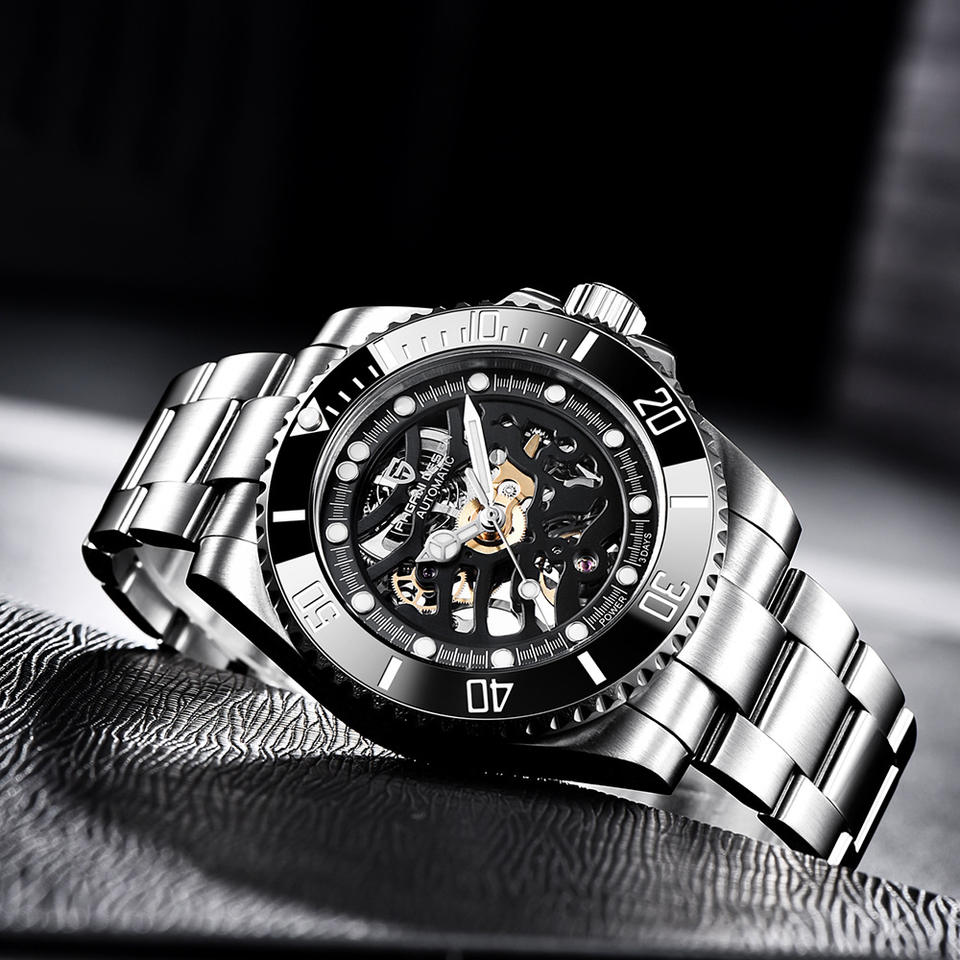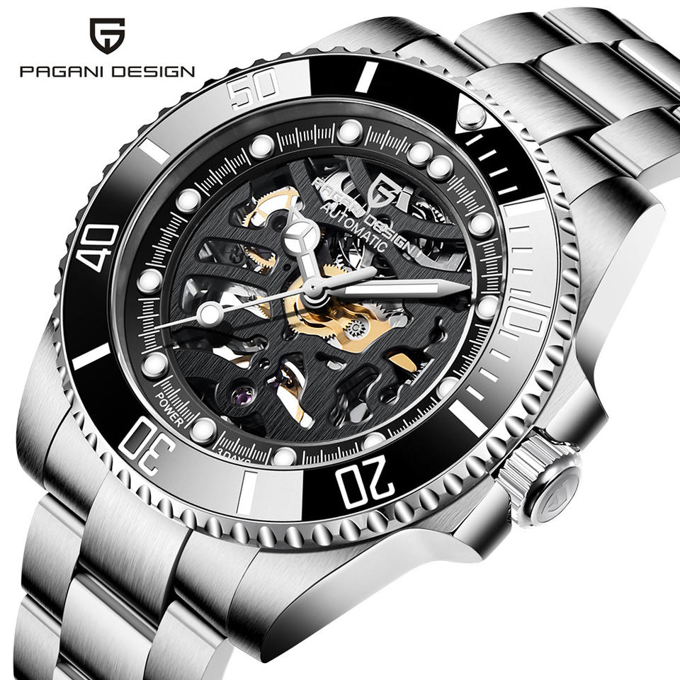 Montre mécanique pour homme Pagani Design, squelette automatique, acier inoxydable, cadran en verre, étanche 100 m, montre de plongée PD-1659