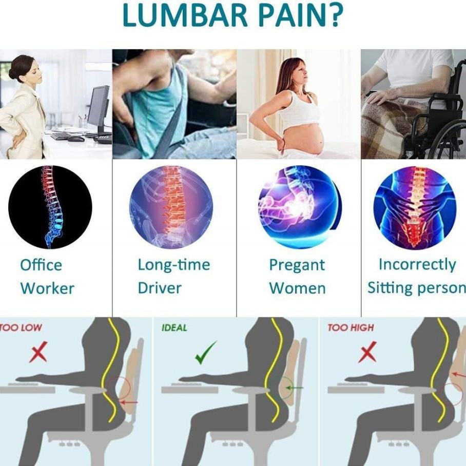 Coussin de soutien lombaire pour soulager la douleur, chaise de bureau, housse amovible, mousse à mémoire de forme, coussin lombaire