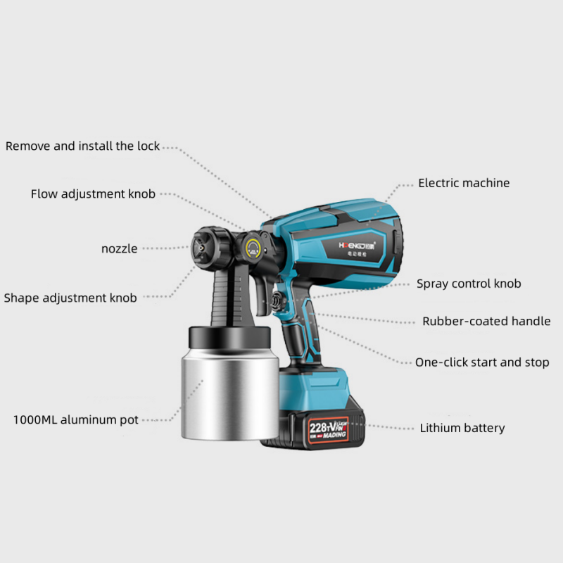 Outils de peinture Pistolet à peinture électrique sans fil Batterie au lithium avec 5 buses en cuivre et 2 arrosoirs pour meubles de clôture