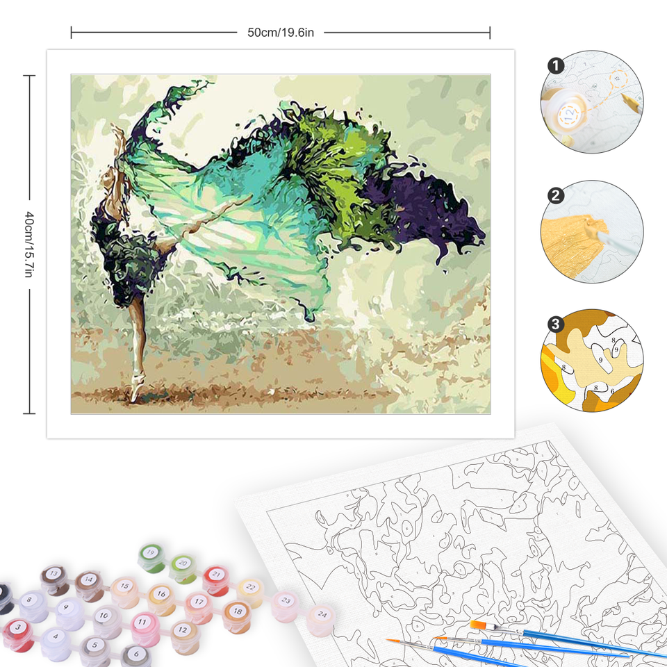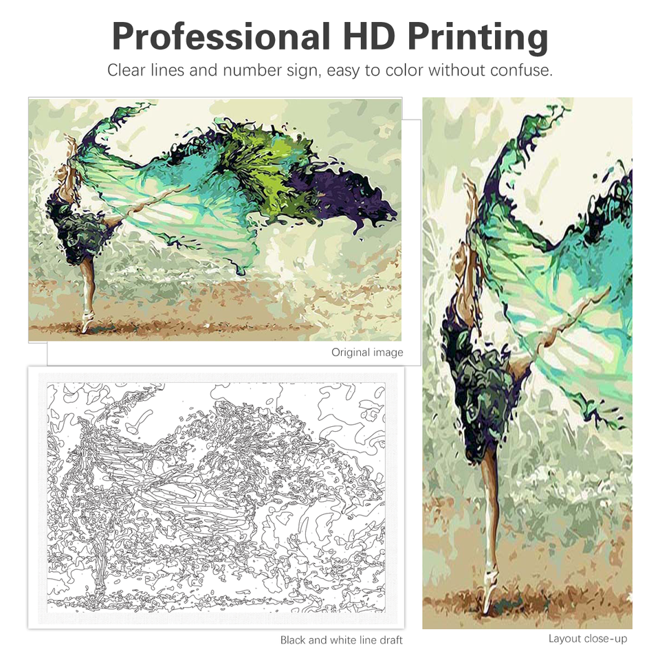 Peinture par numéro pour adultes, peinture facile par numéros pour débutant, peinture acrylique de danseuse abstraite par numéro pour le cadeau de décoration murale à la maison