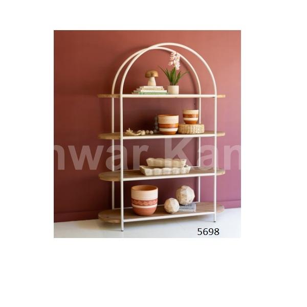 Présentoir arqué en métal peint avec quatre étagères en bois pour la maison salon salle à manger décor affichage de stockage