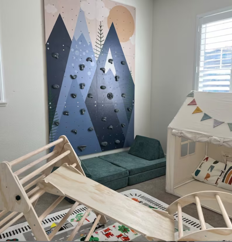 Ensemble de mur d'escalade en bois peint pour enfants avec pierres d'escalade - Matériel PE Utilisation scolaire