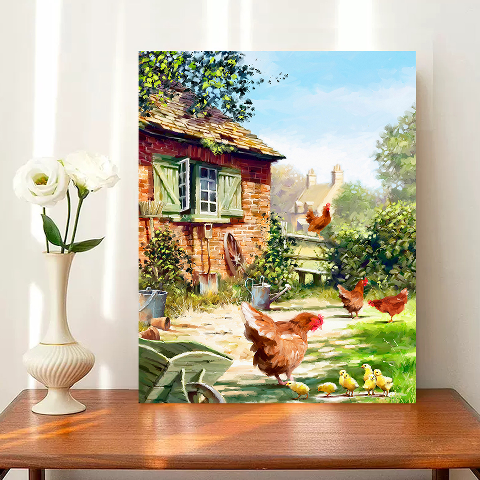 Peinture par numéros Animal Coq pour adulte Dessin peint à la main sur toile Peinture florale pour décoration intérieure 40x50cm/16x20 pouces