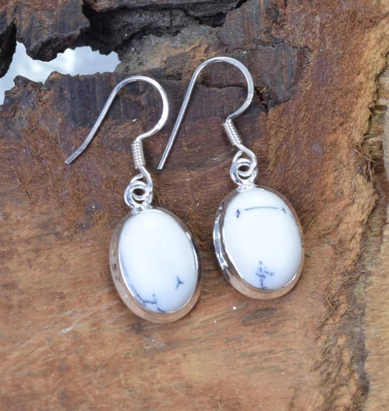 Product Name:Natural Dendrite Agate Gemstone Silver Earrings