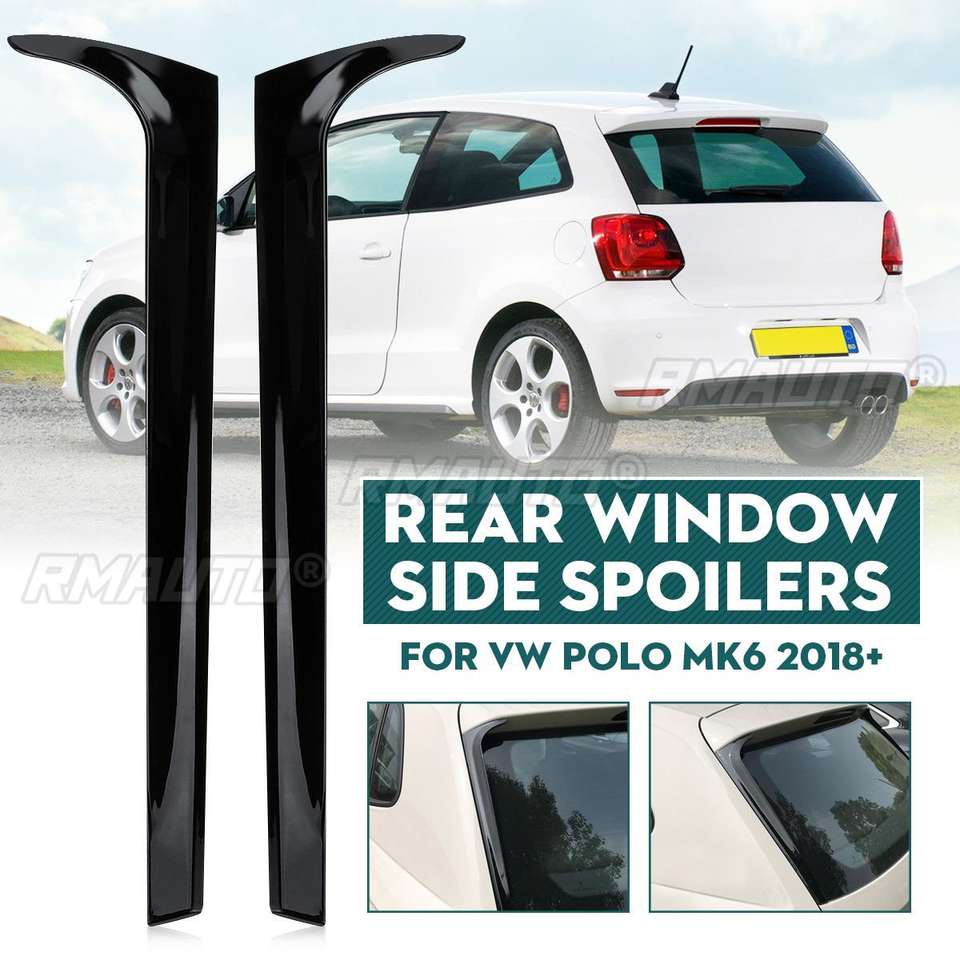 Paire d'extensions latérales de vitre arrière noires brillantes (Canards/Diviseurs) pour VW Polo MK5 2011-17 / MK6 2018+ Accessoire