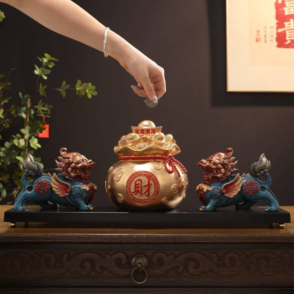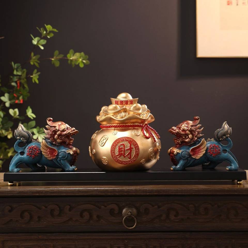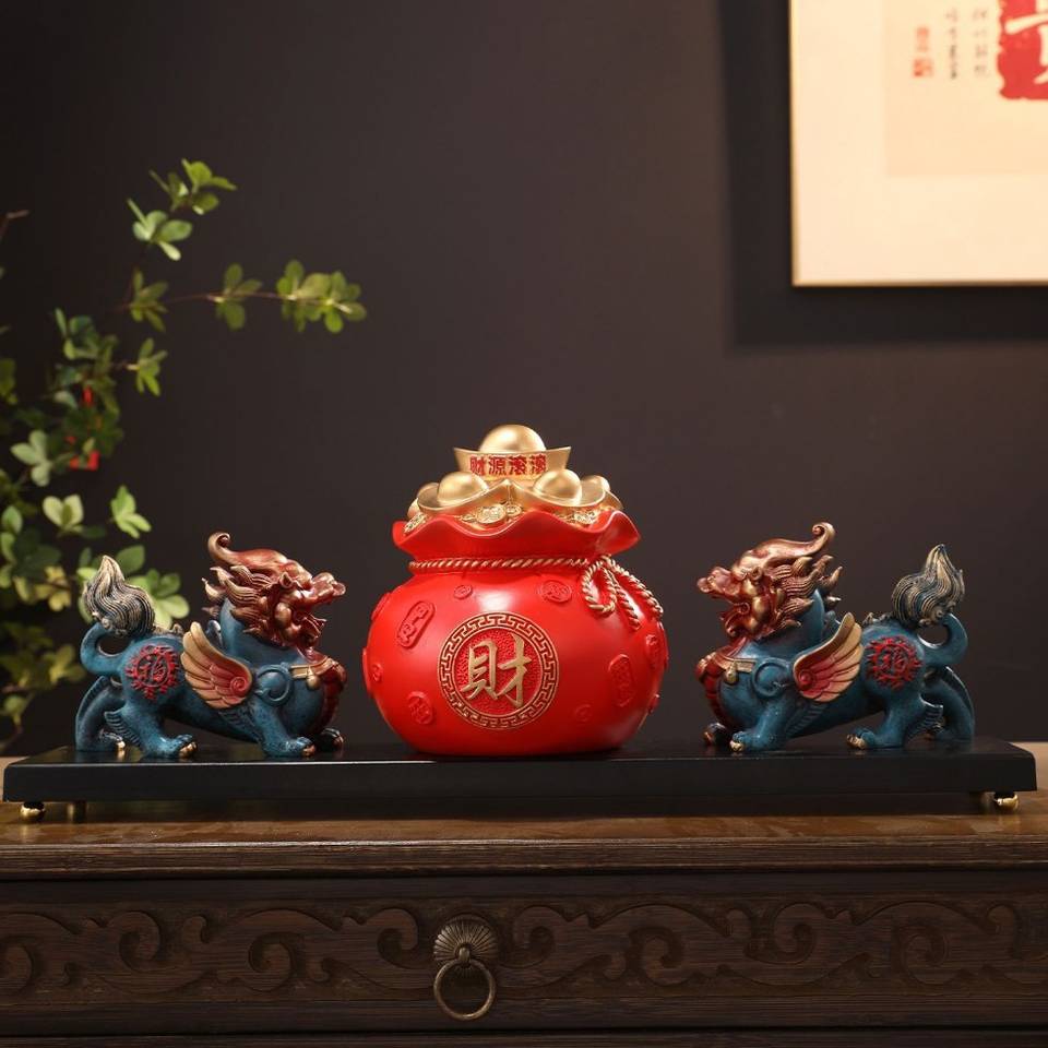 Paire de Plaques Pixiu Jubao Porte-Bonheur en Résine Époxy, Sculpture Artistique, Art Populaire Chinois, Décoration d'Intérieur pour Salon et Entrée