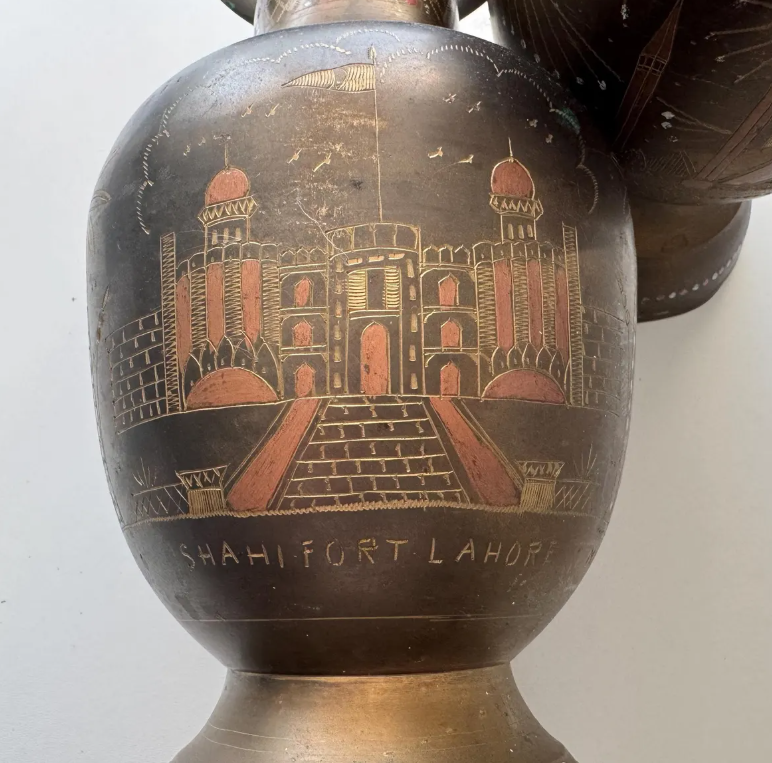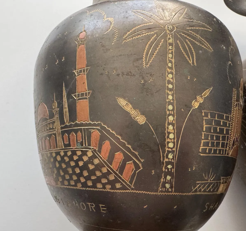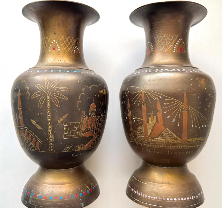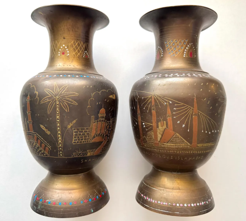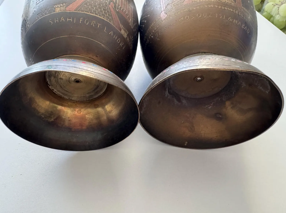 Product Name:Pair of Vintage Hand Engraved Brass Vases Pakistani Art