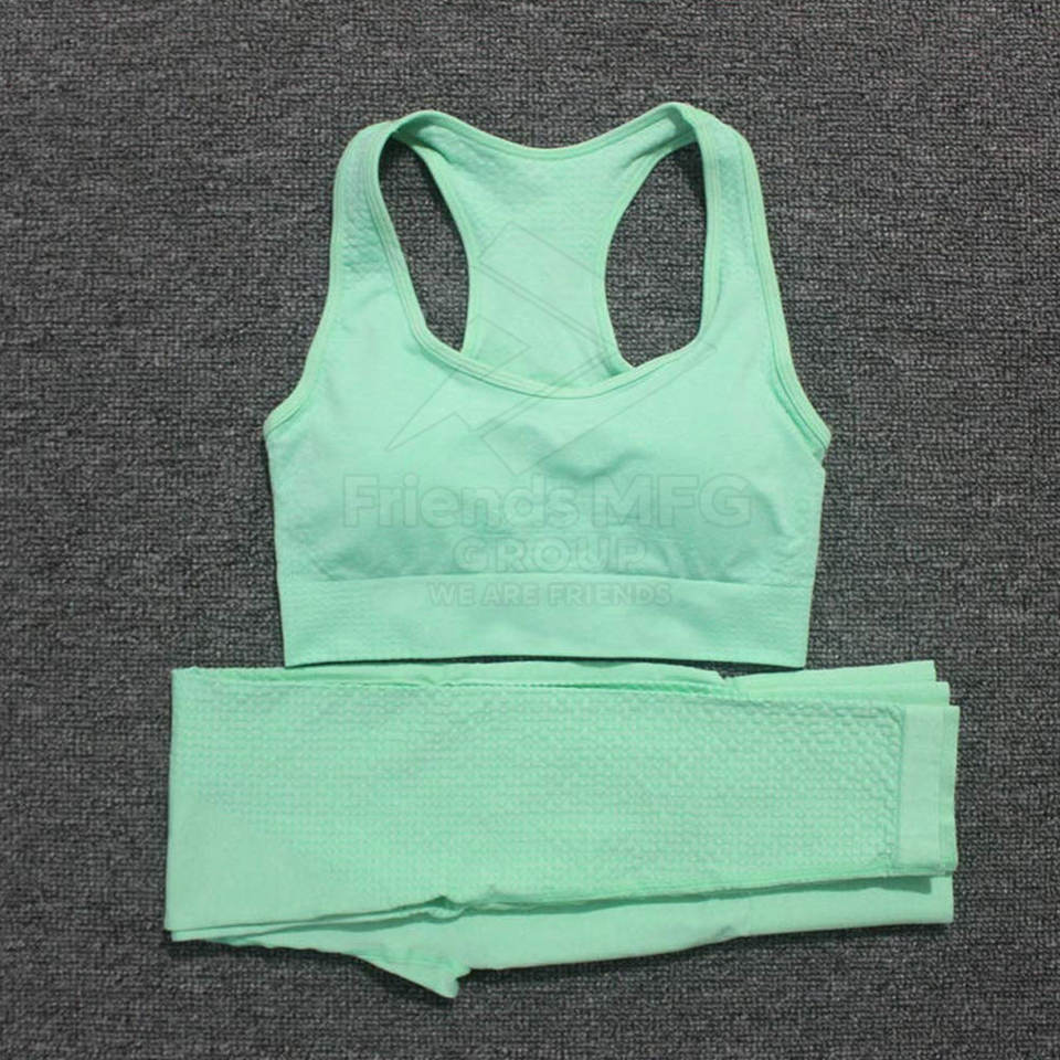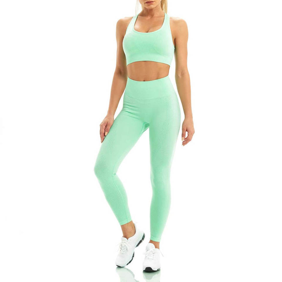 Ensemble de yoga pour femmes, fabriqué au Pakistan, motif uni, écologique, respirant, en spandex/polyester, 2 pièces, confortable et abordable