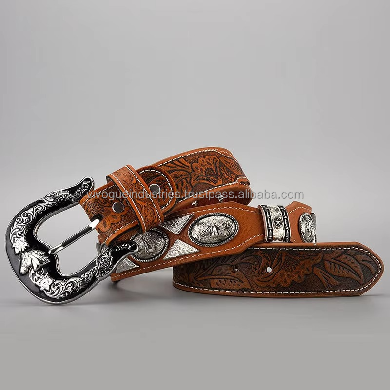 Pakistan Premium Leather Vintage Cowboy Designer Beaded Belt Men's Gift Western Fashion Luxury Cow Hide Handmade Durable Heavy