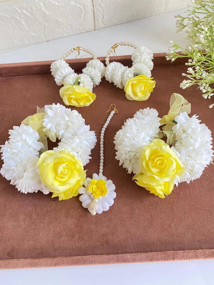 Ensemble de bijoux floraux de mariée pakistanais Mehndi pour la fonction Haldi avec boucles d'oreilles collier bague et Tikka