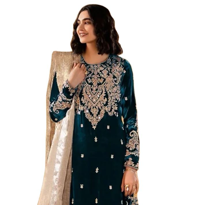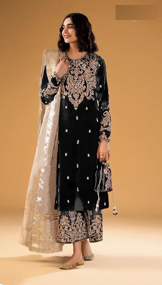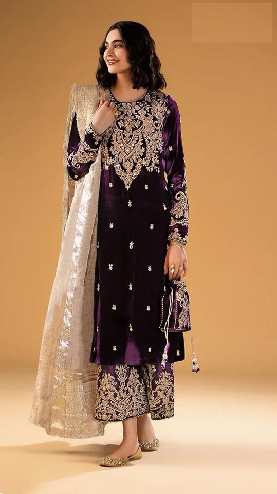 Pakistani Suit Velvet With Embroidery Work With Velvet Pant With Jacquard Dupatta Collection