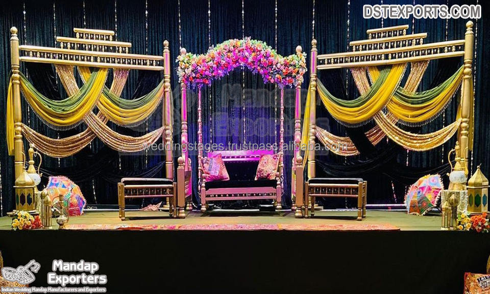 Pakistani Theme Modern Henna Mehndi Stage Setup with Colorful Muslim Bridal Seat Decoration Lightweight Wedding DIY Decor