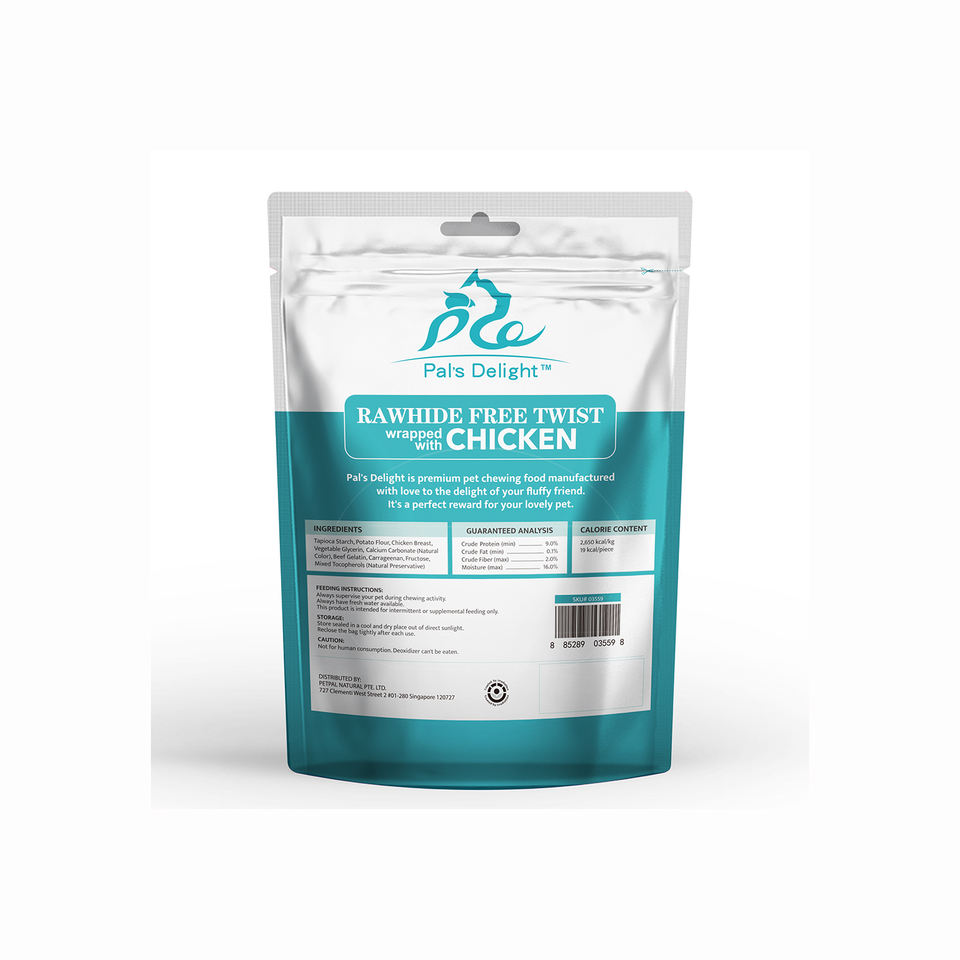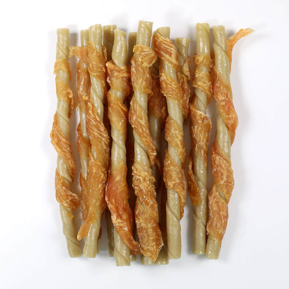 Nom du produit:5 "Rawhide Free Twist enveloppé avec le bâton de poulet