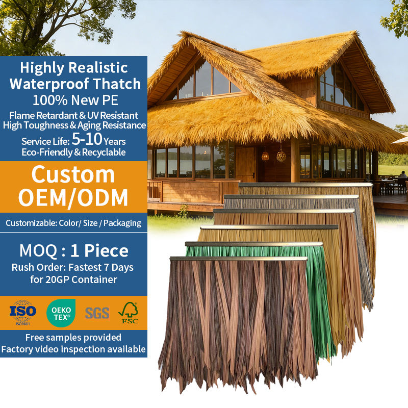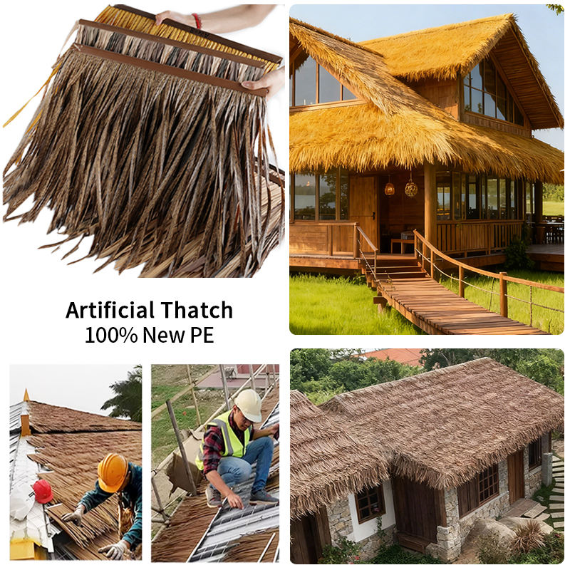 Toiture en paille synthétique imperméable pour cabanes, imitation chaume, tôle de paille artificielle