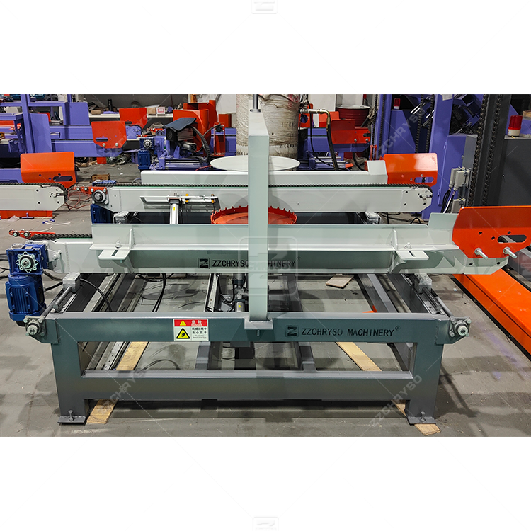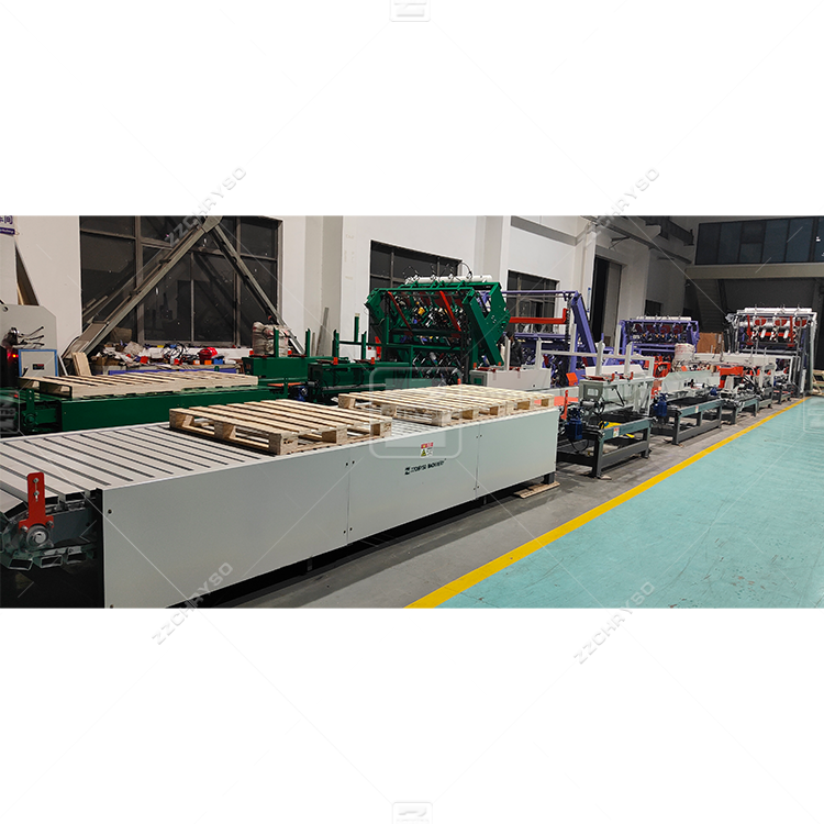 Whole auto pallet nailing line:Stacking,logo print,pallet block connection,chamfer,turnover,conveyor