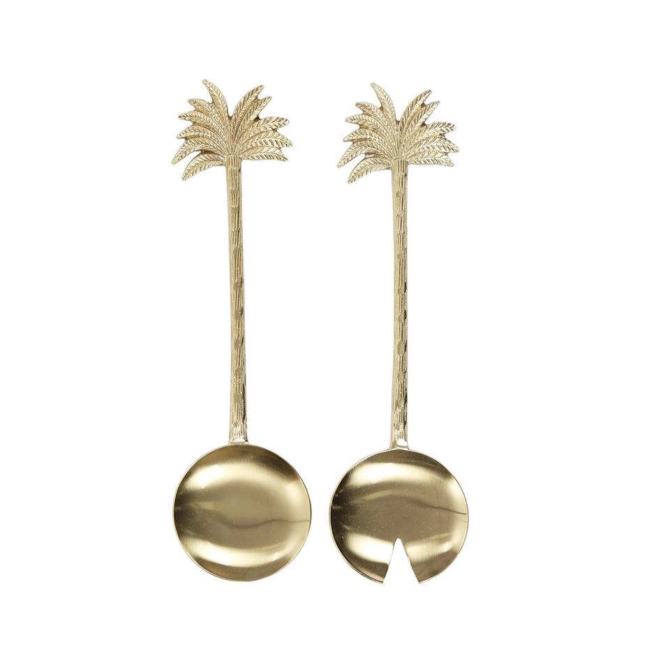 Ensemble de service de salade en laiton Palm Design de 2 avec vernis mat pour la cuisine Ensembles de couverts à salade en laiton uniques à bas prix