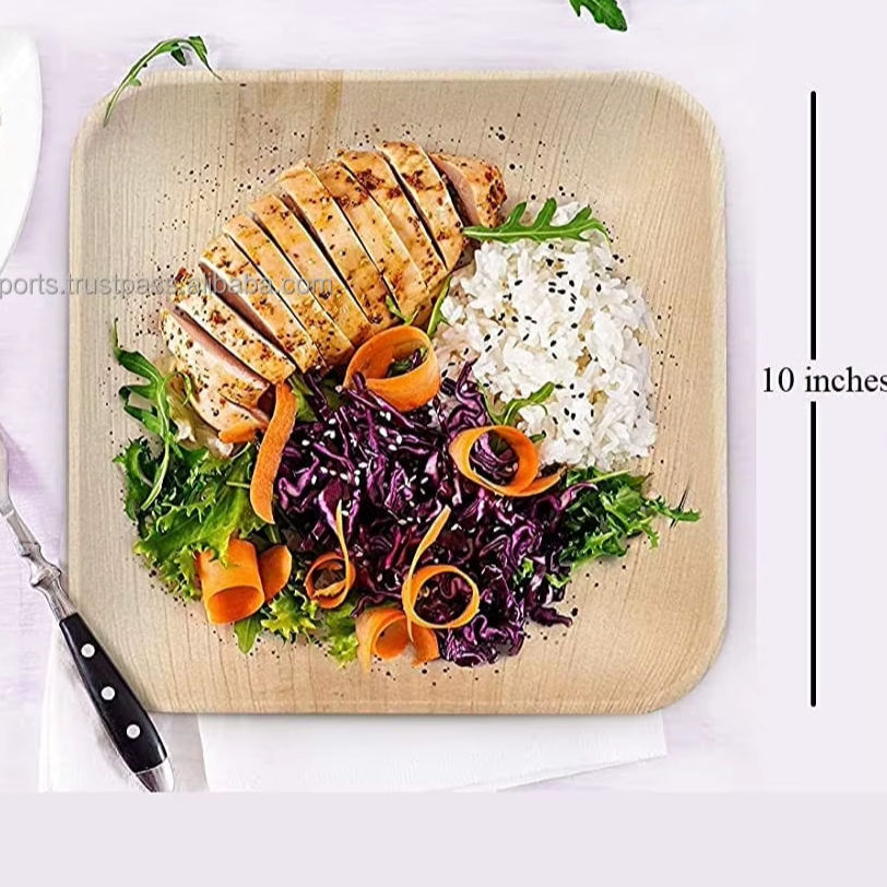 Assiettes carrées en feuilles de palmier de 7 pouces, écologiques, biodégradables, jetables, légères, modernes, pour les fêtes, la restauration rapide, les collations, les desserts