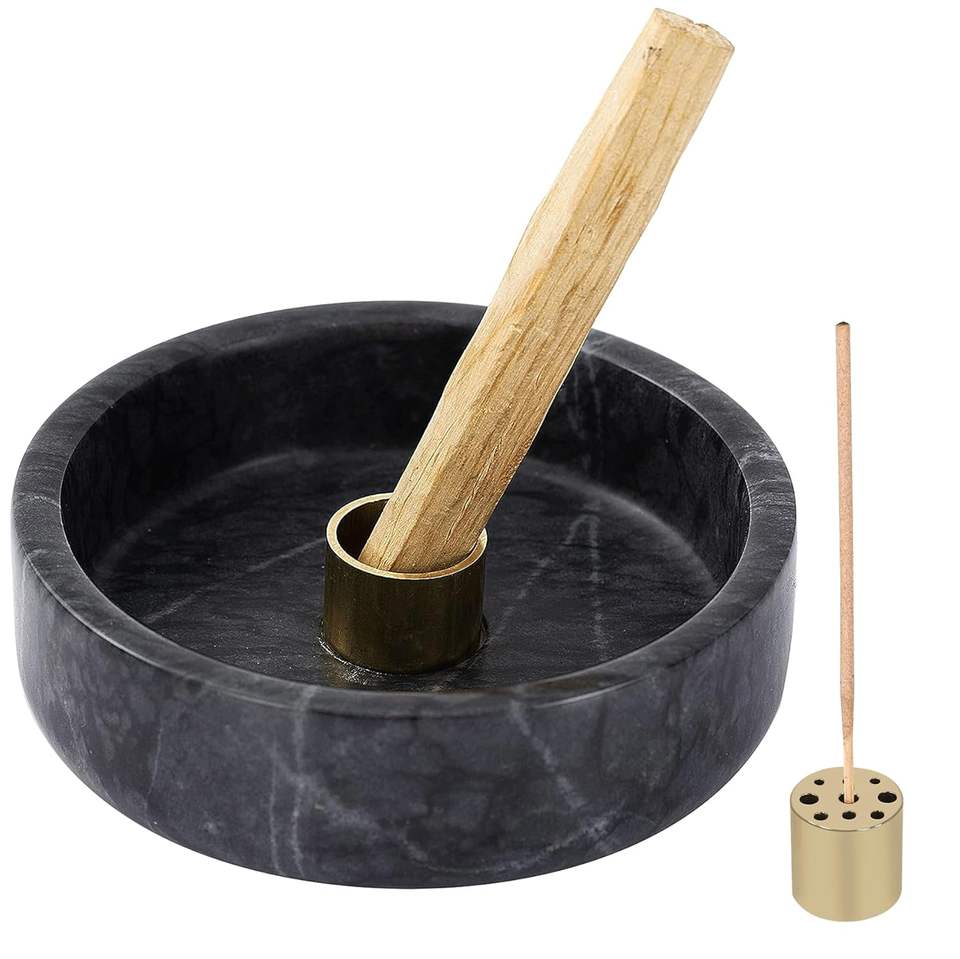 Palo Santo Holder, Natural Marble Incense Burner Palo Santo Sticks Handmade Palo Santo Wood Incense Stick Holder Natural Black
